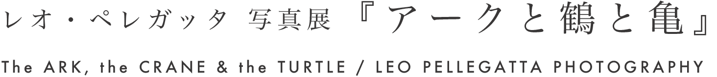 今回の写真展『アークと鶴と亀/The ARK, the CRANE & the TURTLE』は、レオ・ペレガッタの最新作である。「アーク」とは、英語では「Ark of the Covenant(契約の箱)」とも呼ばれ『旧約聖書』に記されている、十戒が刻まれた石板を収めた箱のことで聖櫃(せいひつ)と称されることもある。この「アーク」について、日本でひそやかに語り継がれている物語がある。
